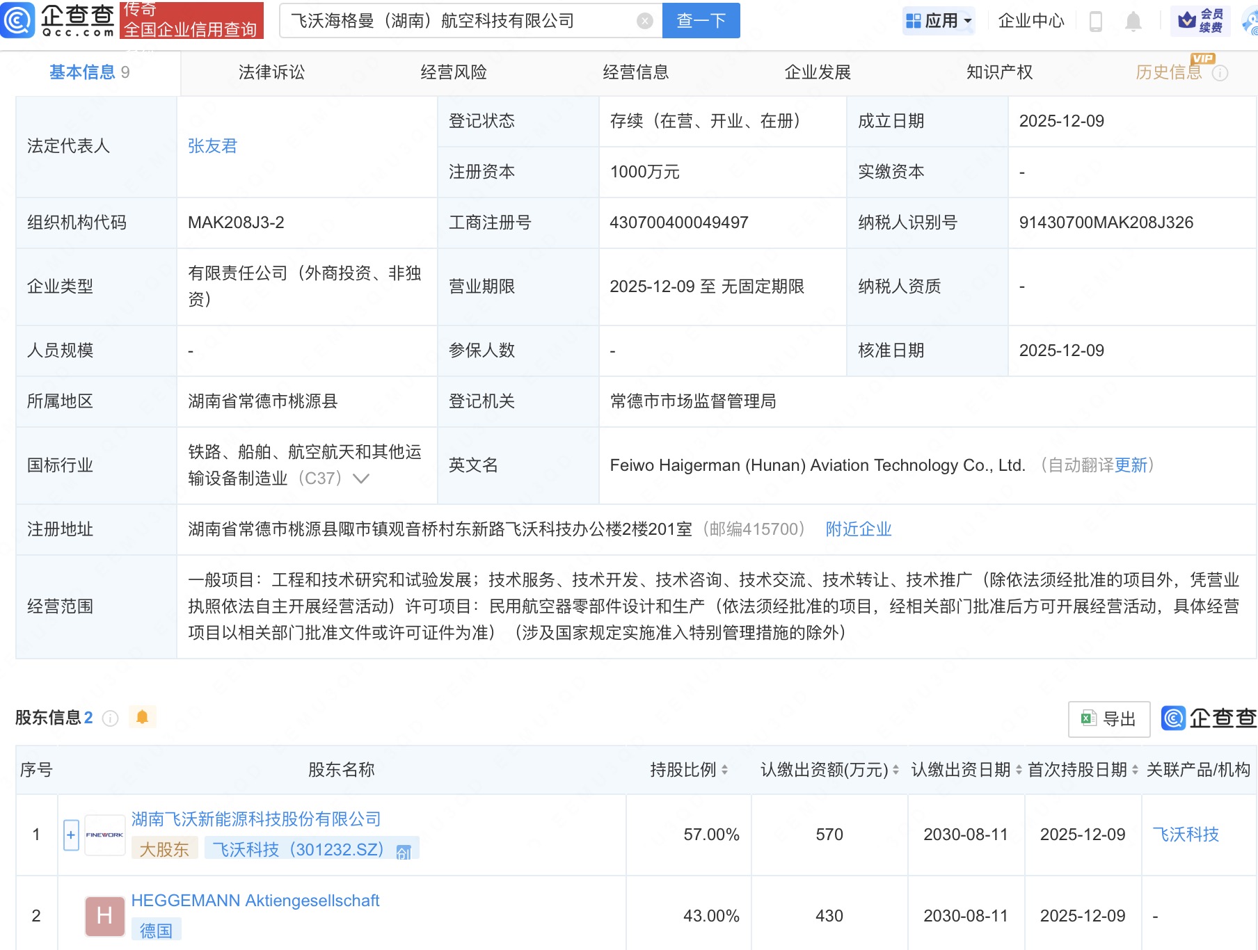 股票配资官网交易中心 飞沃科技与德国航空零部件企业Heggemann合资公司成立